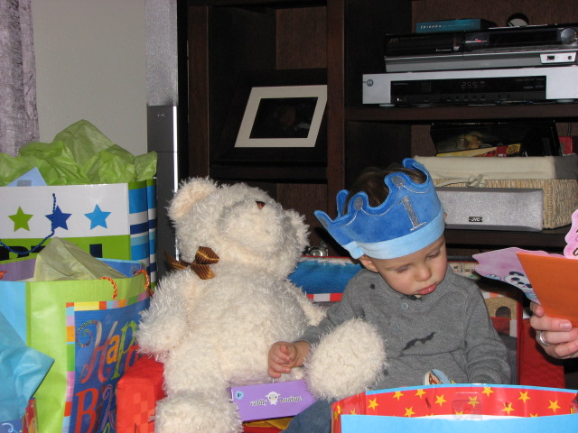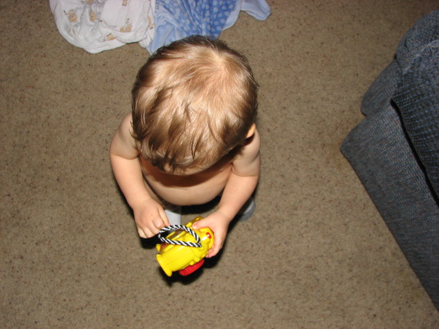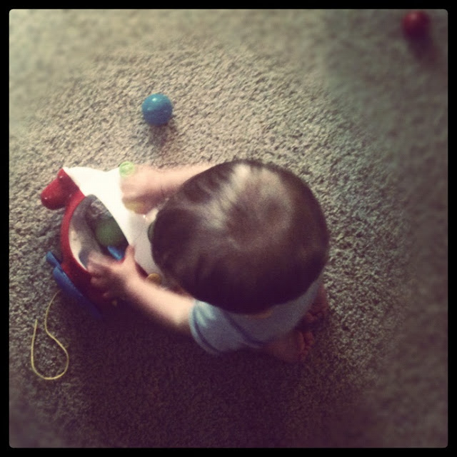 Just today I heard that he has learned to push his little bicycle over to the gate keeping him out of the kitchen, climb up on the bike, and try to climb over the gate. Little boys -- you can't keep them from engineering up something!