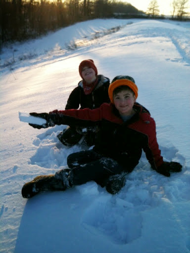This year you invited a friend to spend the night and go laser tagging with you for your birthday. We all enjoyed the laser tag games and our team beat the socks off the other team both times. I hope this is a memory that you will always remember. We also spent a lot of time sledding over your birthday weekend. You preferred to sled by yourself, although Kylie liked riding with you in the sled. You took some major dumps off the sled but you sure toughed them out. You got a little upset that you couldn't hit the snow ramp your dad built, but that's okay, because you and your friend took many sled rides down the lake dam (away from the lake, of course). You requested homemade mini pizzas for supper and a cookie cake for dessert. Your birthday present this year included a room re-do. You got a new TV, a desk that used to be your great-grandmother's, a new bedding set, and a reorganized room, which all of it is absolutely loved by you.