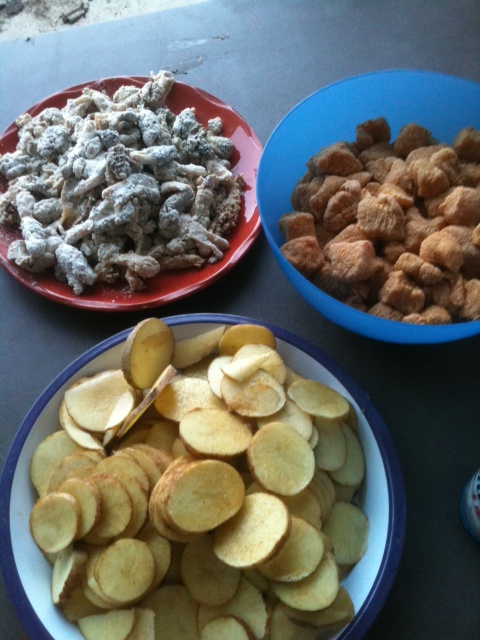 On Sunday evening, Matt, Nikki, and Jon came over to fry up some spoonbill that Matt caught, many mushrooms which we ate as soon as they came out of the fryer, and some twice-fried potato slices that were as good as McDonald's fries.