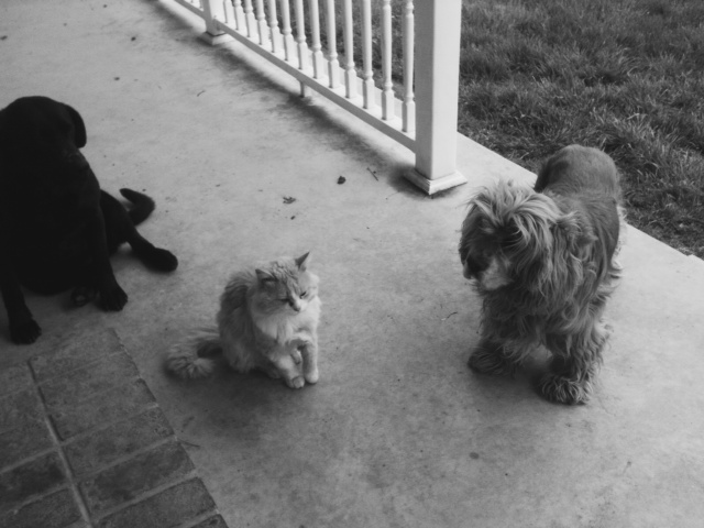 Kylie takes my cell phone outside and comes back in with some neat photos of our pets. I added a little editing effects via the Afterlight App and viola! Here is the real, every day of our pets.