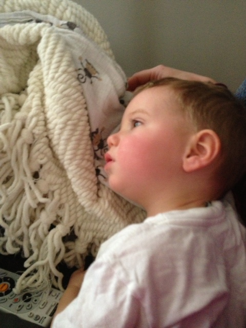 | Sleeping upright to make his earache feel better |