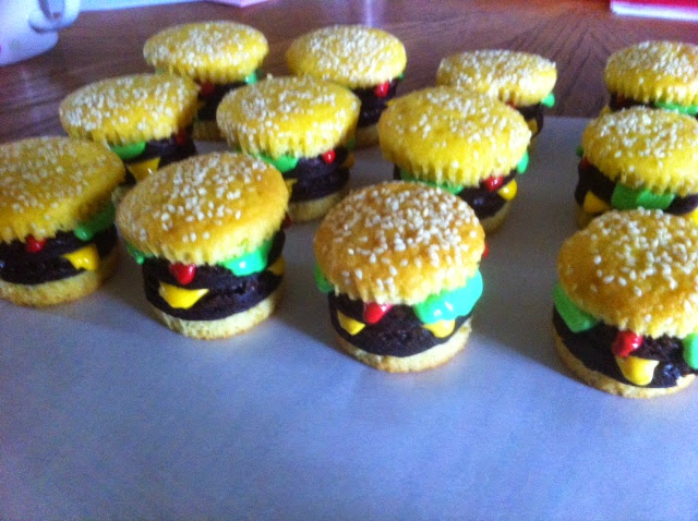 Enjoying my momma's sweet burgers for Father's Day (made out of brownies and cupcakes!)
