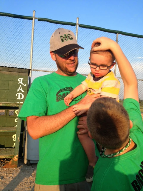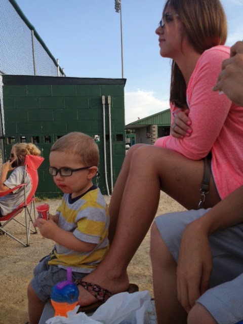 My mom, brother, sister, and nephew came to watch one of Kaden's game. McCoy loved snacking on an ICEE cone while waving and quietly saying, "Hi, Keane," through the fence.